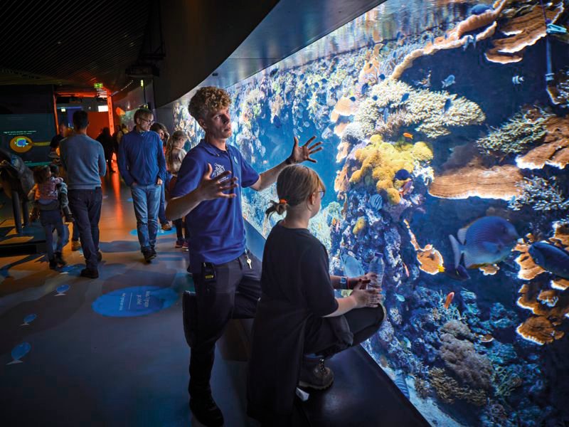 Die Ausstellung gliedert sich in verschiedene Themenbereiche: von tropischen Korallenriffen über die geheimnisvolle Welt der Tiefsee bis hin zu den Küstengewässern Skandinaviens. Riesige Ozeanbecken mit Haien und Rochen, farbenprächtige Tropenfische und interaktive Stationen machen den Besuch abwechslungsreich und lehrreich zugleich.