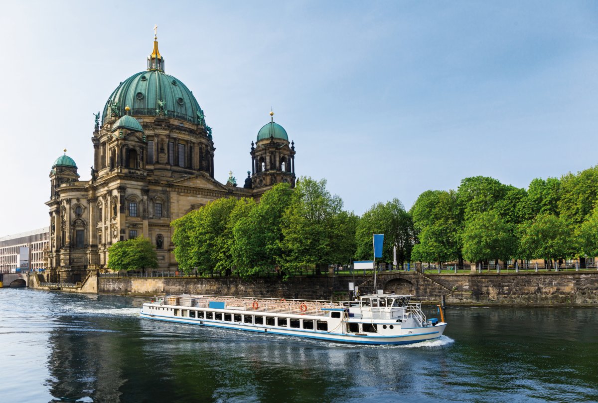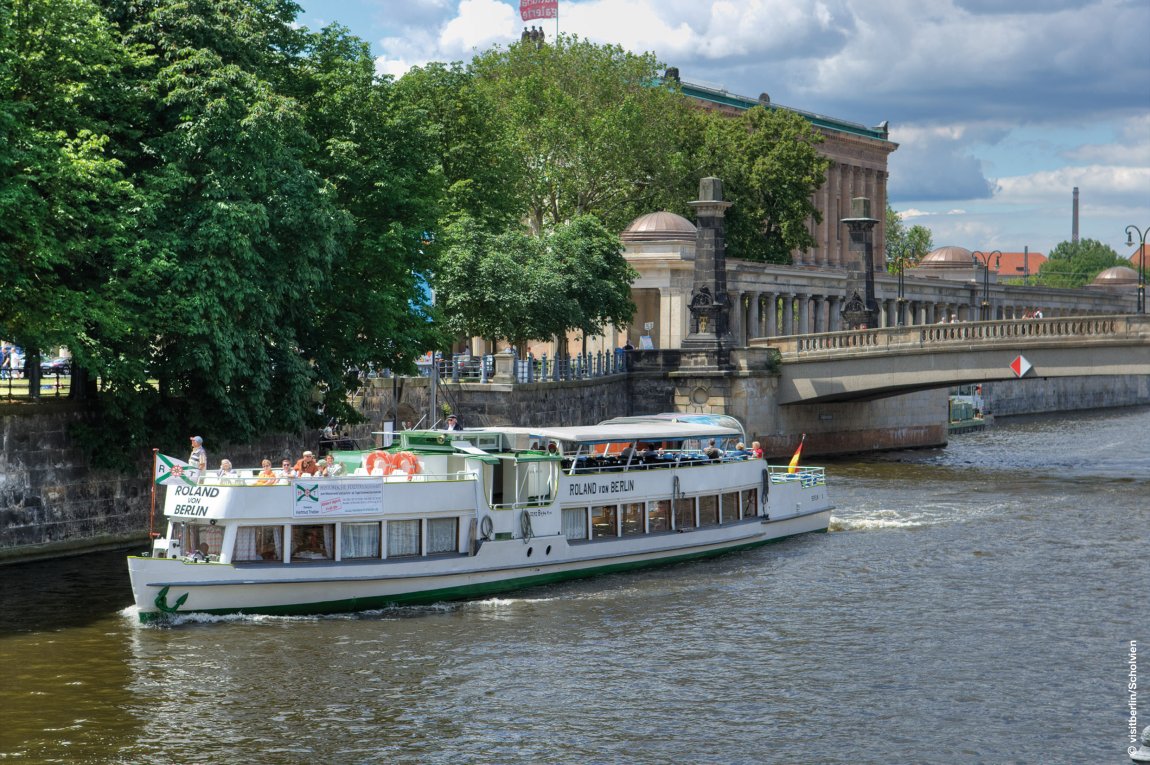 Auf dem Deck eines Schiffes Berlin erkunden – das können Sie bei einer Spreefahrt. Ca. eine Stunde die Seele baumeln lassen und den Ausblick