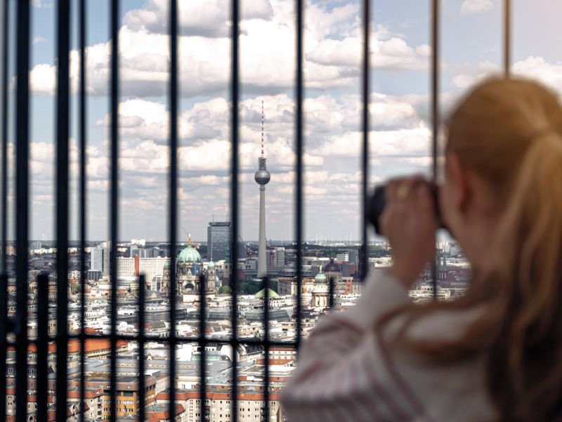 Einen 360 Grad Rundumblick genießen Sie und Ihre Schüler*innen auf der Aussichtsplattform des Panoramapunkts: Ob Brandenburger Tor, Reichstag, Bundeskanzleramt, Schloss Bellevue, Berliner Dom, Fernsehturm, Gendarmenmarkt, Holocaust-Mahnmal oder Gedächtniskirche – man weiß gar nicht, wo man als erstes hinsehen soll. Doch nicht nur die Aussicht ist hier beeindruckend: Die Auffahrt erfolgt mit Europa schnellsten Aufzug und die Ausstellung „Berliner Blicke“ zeigt Berlin im Wandel der Zeit.
