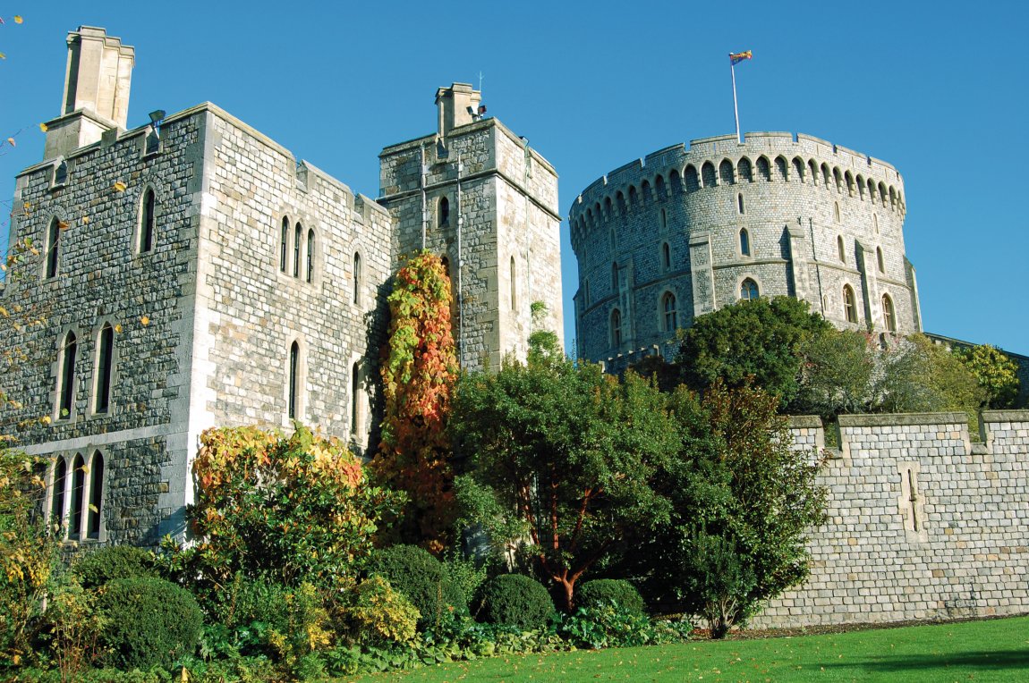 sowie die imposante Runde Turm-Anlage, die hoch über der Stadt Windsor thront.