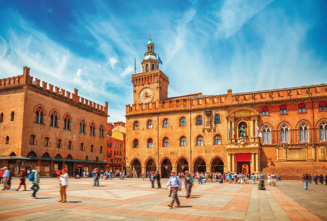 Die charakteristischen Arkaden, die sich über viele Kilometer durch Bologna ziehen, machen die Stadt zu einem besonderen Erlebnis. Höhepunkte sind die beiden schiefen Türme „Asinelli“ und „Garisenda“, die Piazza Maggiore mit dem Neptunbrunnen und die Basilika San Petronio. Museen, Kunstgalerien und Theater eröffnen zusätzliche kulturelle Perspektiven und runden den Ausflug ab.