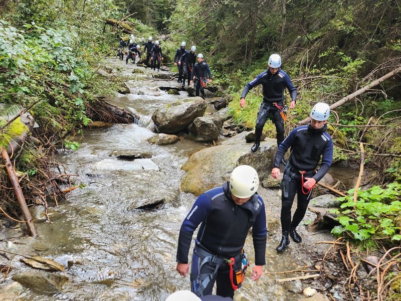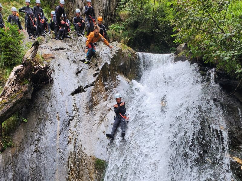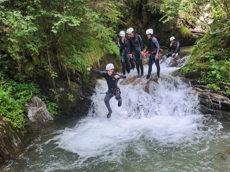 Canyoning Fun & Jump ist die ideale Schluchtentour für Schulklassen: spielerisch, abwechslungsreich und voller unvergesslicher Eindrücke. Gemeinsam mit professionellen Guides entdecken die Schülerinnen und Schüler kristallklare Bergbäche, rutschen über glattgeschliffene Felsen, springen in natürliche Wasserbecken, seilen sich ab an tosenden Wasserfällen und genießen das pure Abenteuer mitten in der Natur.