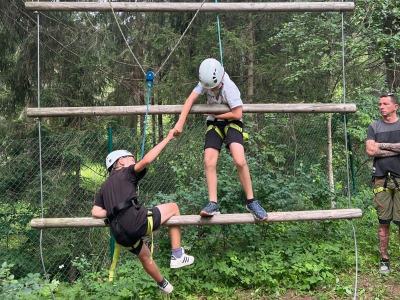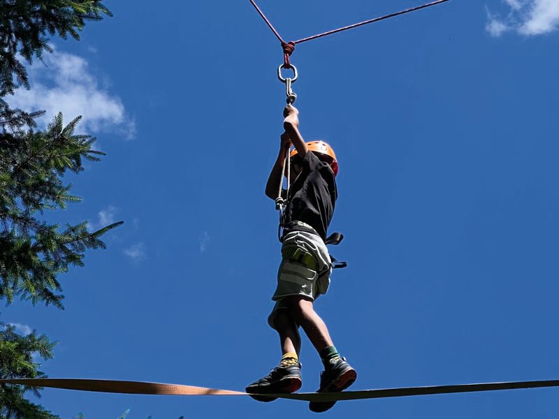 Die Aufgabe lautet: selbständig als Gruppe eine Seilbrücke bauen. Material und Ausrüstung werden gestellt. Da werden Teamwork und selbständige Organisation sowie Kreativität und Ideen gefördert. Euer Guide überprüft die Sicherheit. Die Belohnung am Ende ist die Fahrt mit der Seilrutsche über die Schlucht. Ein tolles Erlebnis im Schullandheim.