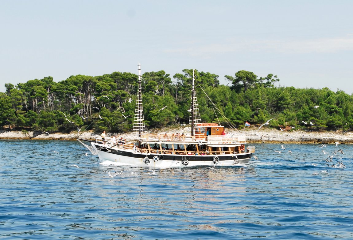 Dieser Nationalpark überrascht seine Besucher*innen mit unberührter Natur. Von Fažana aus fährt die Fähre in 15 Minuten nach Veli Brijuni. Bereits während der Schifffahrt genießt man einen herrlichen Ausblick auf die Inselgruppe.