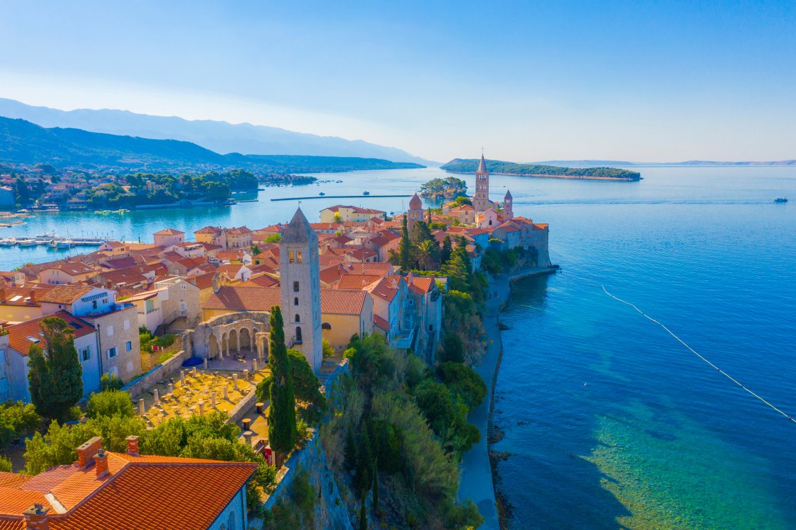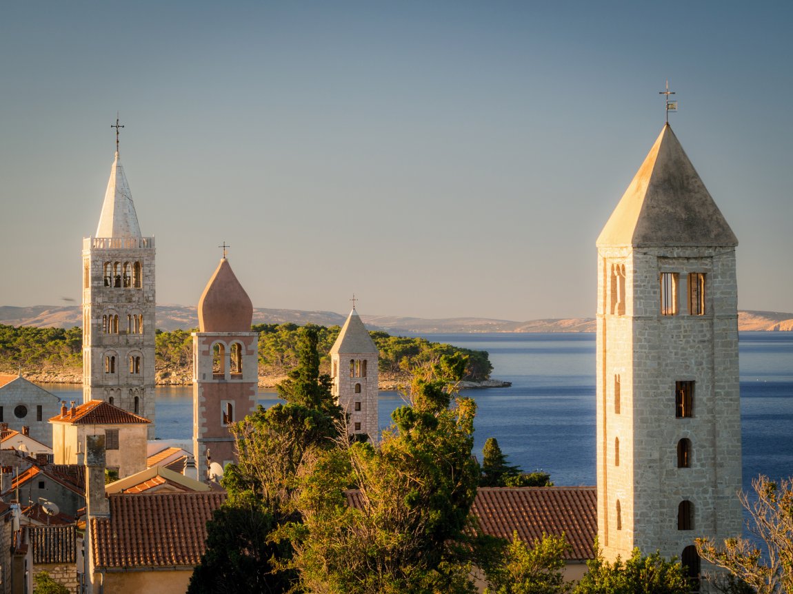 Sonne, Wasser und unberührte Natur - diese Eindrücke erlebt man bereits bei der 2stündigen Fährüberfahrt zur Insel Rab. Schlendern Sie und Ihre Schüler*innen durch enge Gassen und bestaunen Sie die vier weißen, bekannten Türme der Inselhauptstadt Rab.