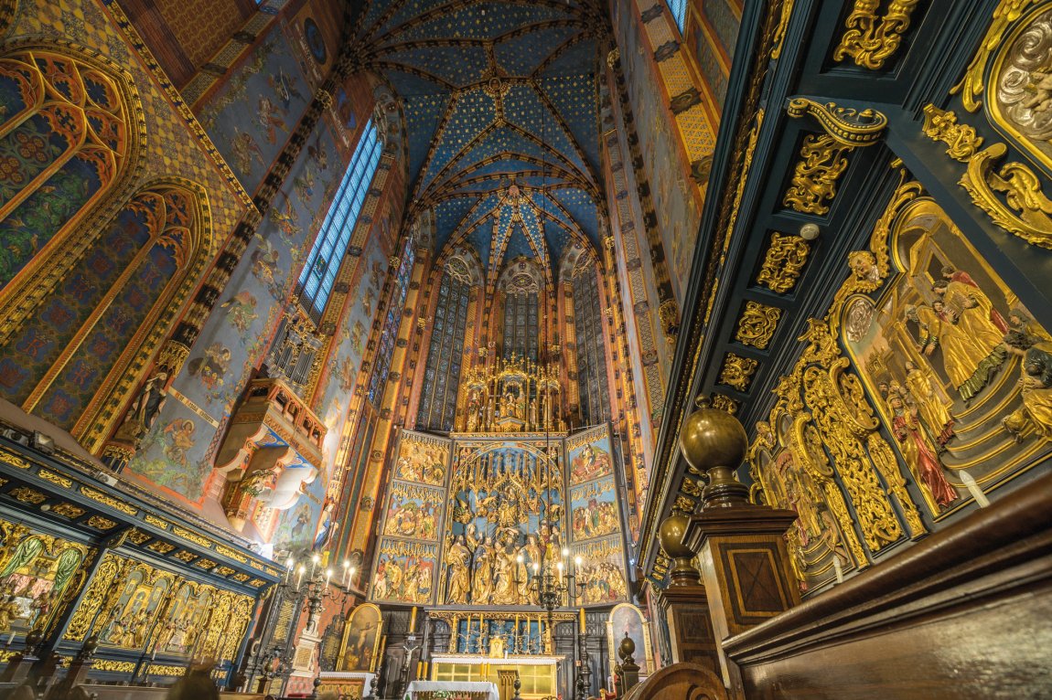 Die Marienkirche (Kościół Mariacki) prägt als Wahrzeichen der Stadt die Skyline Krakaus. Die gotische Basilika beeindruckt nicht nur durch ihre Architektur, sondern auch durch den berühmten Trompeter, der stündlich vom Turm bläst – eine jahrhundertealte Tradition, die Schüler fasziniert.